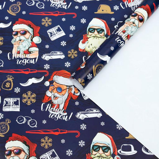 Цена за 10 шт. Бумага упаковочная глянцевая "Кайфуша Санта", 50 х 70 см