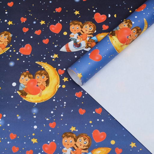 Цена за 10 шт. Бумага упаковочная глянцевая "Любовная парочка", 70 х 100 см