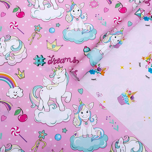 Цена за 10 шт. Бумага упаковочная глянцевая двусторонняя "Единороги", 70 х 100 см