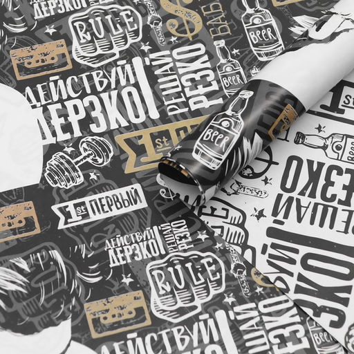 Цена за 10 шт. Бумага упаковочная глянцевая "Действуй", двусторонняя, 0,5 х 0,7 м,80 гр/м,