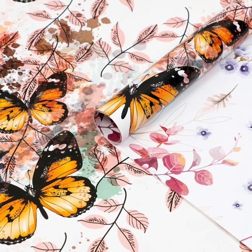Цена за 10 шт. Бумага упаковочная глянцевая двустороняя "Бабочки", 100 х 70 см