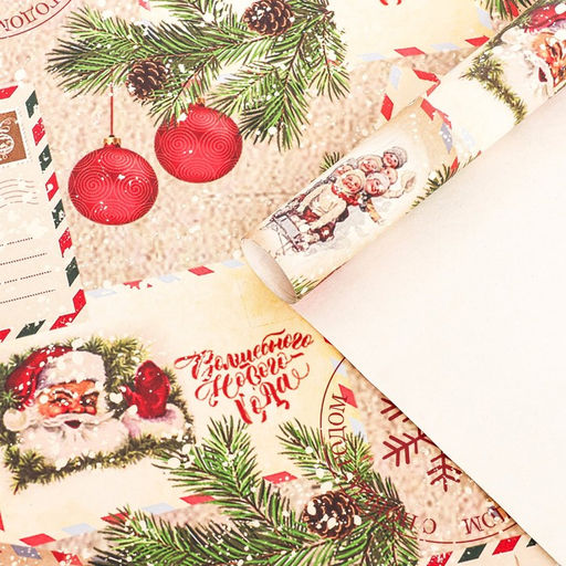 Бумага упаковочная крафт белый "Письмо Деда Мороза!", 70 х 100 см,1 лист
