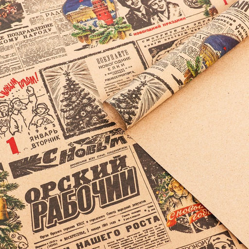 Бумага упаковочная крафт бурый " Газета советская", 70 х 100 см,1 лист