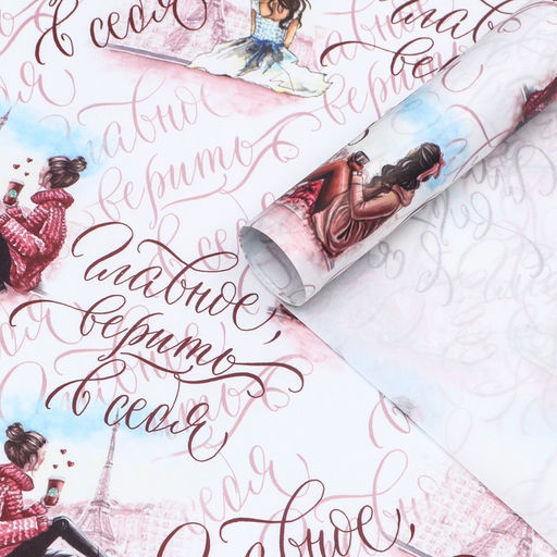 Бумага упаковочная глянцевая "Главное верить в себя", 70 х 100 см,1 лист,