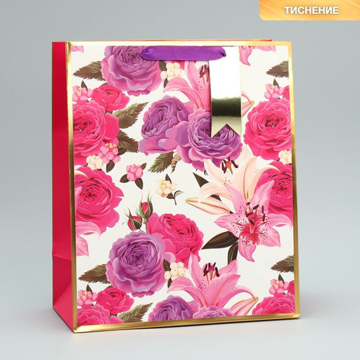 Пакет подарочный с шильдиком Самой нежной, 30.5 х 25.4 х 12.7 см