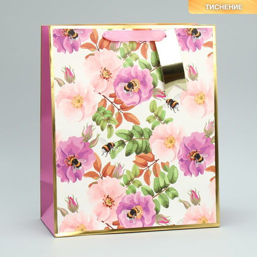 Пакет подарочный с шильдиком Нежные цветы, 30.5 х 25.4 х 12.7 см