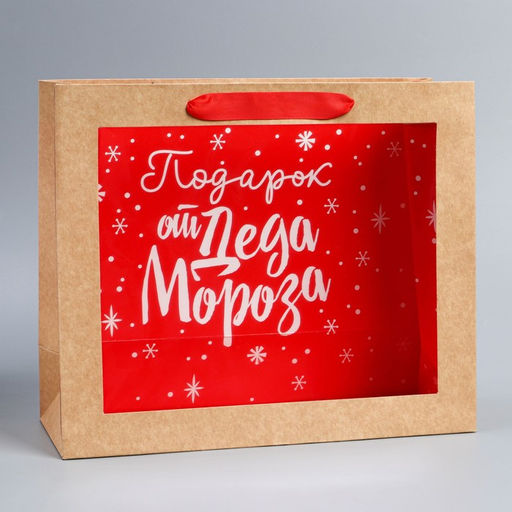 Пакет крафтовый с пластиковым окном Подарок от Деда Мороза, 31 х 26 х 11 см