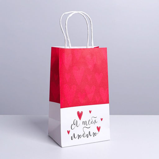 Пакет подарочный крафтовый Я тебя люблю, 12 21 9 см
