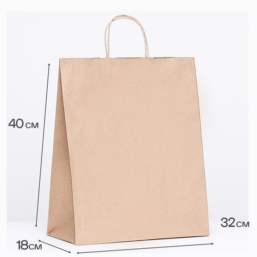 Цена за 25 шт. Пакет бумажный крафт 90 г/м, круглая ручка 32 х 18 х 40 см