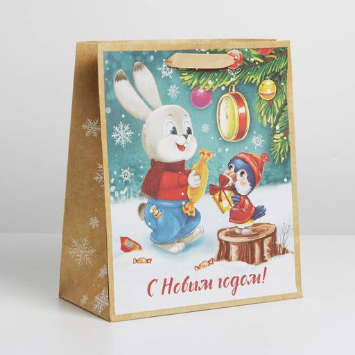 Пакет крафтовый вертикальный С Новым годом!, ML 23 27 8 см