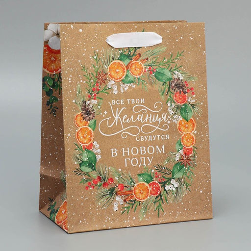 Пакет крафтовый вертикальный «Новогодний венок», MS 18 × 23 × 10 см