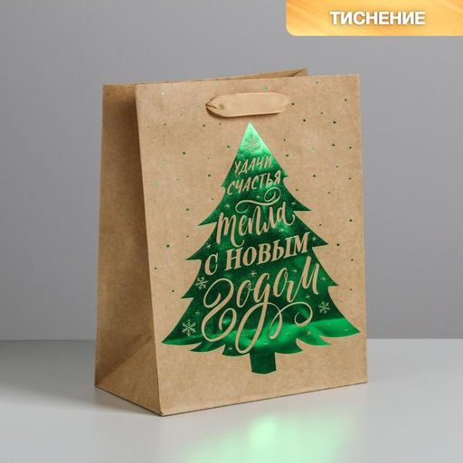 Пакет крафтовый вертикальный Ёлочка нарядная, MS 18 23 10 см