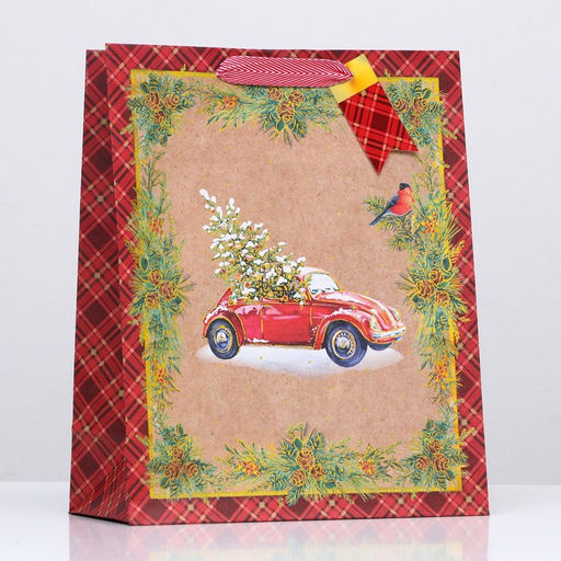 Пакет подарочный "Машина с ёлкой" 26 х 32 х 12 см