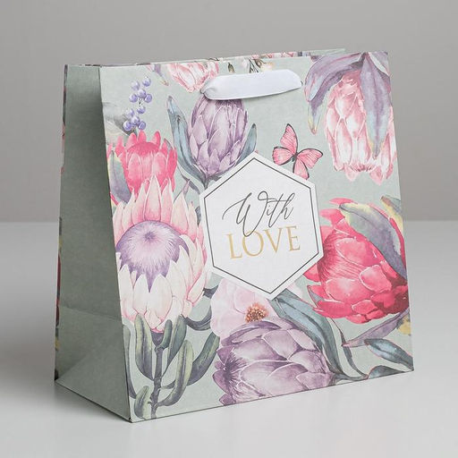 Пакет крафтовый квадратный With love, 22 22 11 см