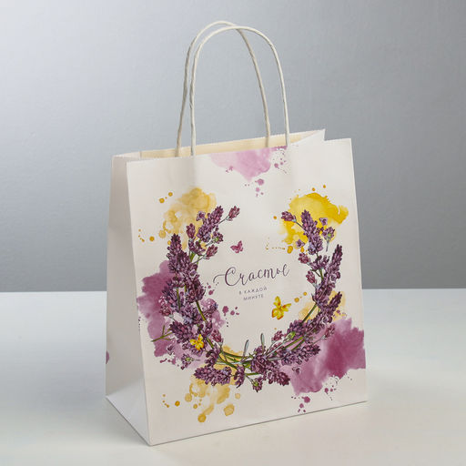 Пакет подарочный крафт Счастье в каждой минуте, 22 25 12 см
