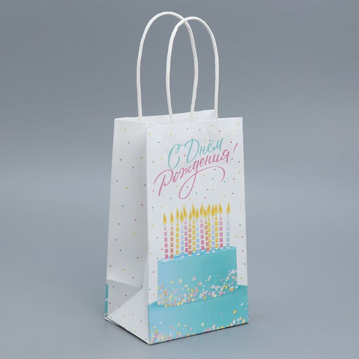 Пакет крафтовый С Днем рождения!, 12 21 9 см