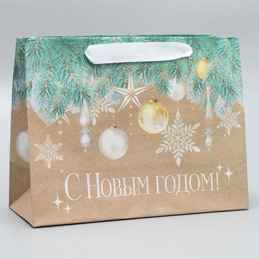 Пакет крафтовый горизонтальный Счастья в Новом году, MS 23 х 18 х 10 см