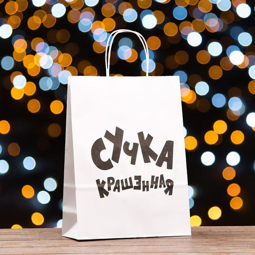 Пакет подарочный с приколами, крафт Крашенная, белый, 32 х 24 х 10,5 см