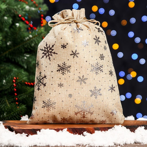 Цена за 5 шт. Мешочек подарочный из холщи "Снежинки", 20 х 28 см
