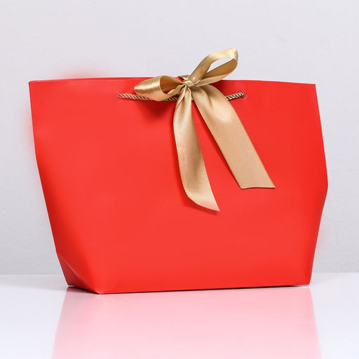 Цена за 12 шт. Пакет подарочный с лентой 26 х 25 х 11 см "Красный"