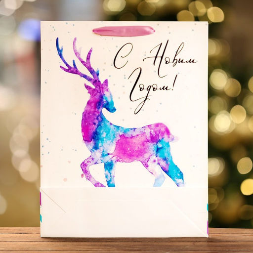 Пакет ламинированный вертикальный "Акварельный Олень",33 х 42 х 10 см