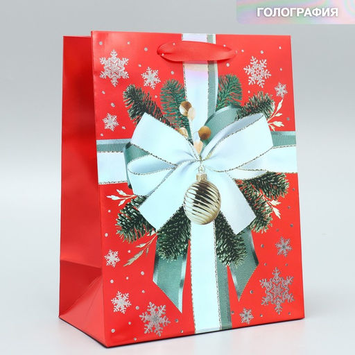 Пакет ламинированный вертикальный Новогодний бант, MS 18 23 10 см