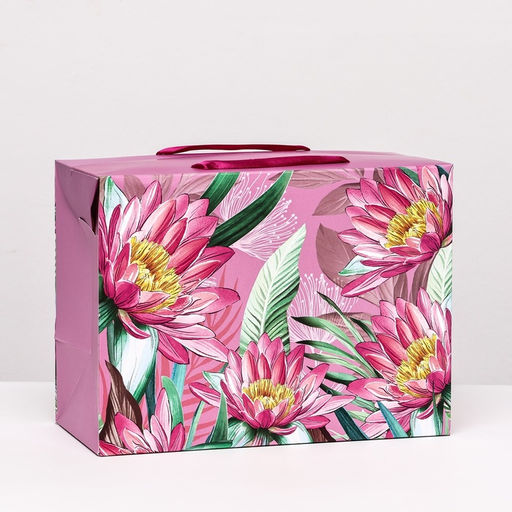 Пакет подарочный "Цветы" розовый, 27 х 20 х 13 см