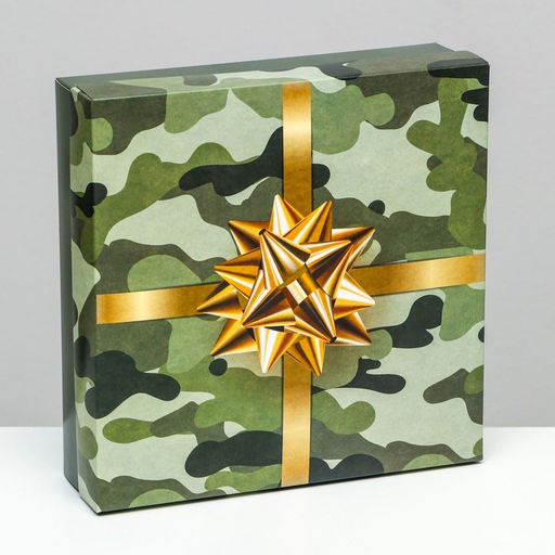 Цена за 5 шт. Коробка складная, "Праздничный камуфляж" 23 х 23 х 6,5 см