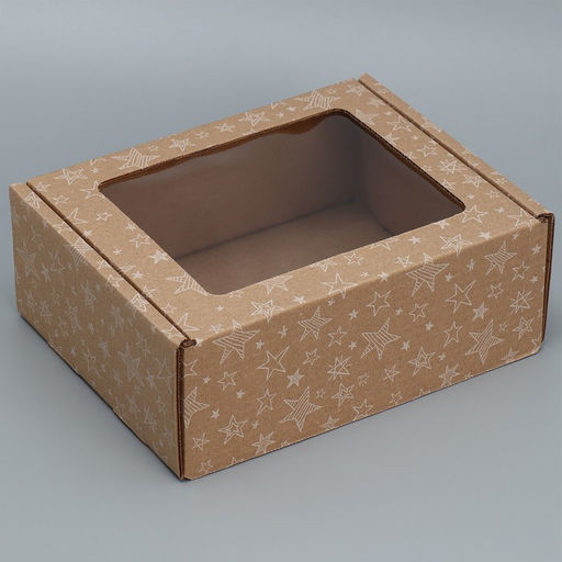 Цена за 5 шт. Коробка сборная с окном Звезды, бурый ,27х10х21 см