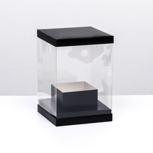 Коробка для цветов с вазой и PVC окнами, складная, 16 х 23 х 16 см, чёрный
