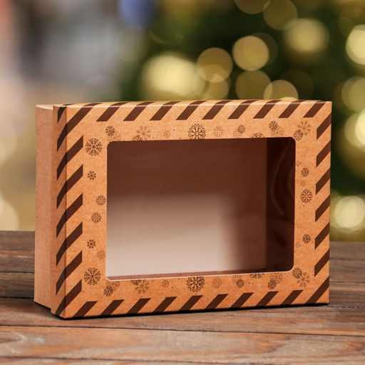 Цена за 5 шт. Коробка складная, крышка-дно, с окном "Подарок от Деда Мороза" 21 х 15 х 7 см