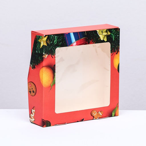 Цена за 20 шт. Коробка складная с окном "Апельсин", 15 х 15 х 4 см