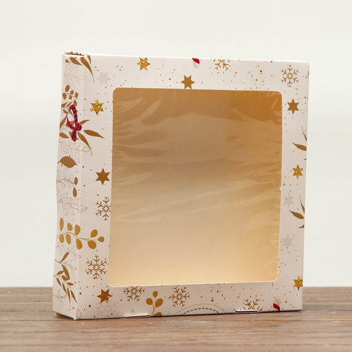 Цена за 20 шт. Коробка складная с окном "Новогодняя" 20 х 20 х 4 см