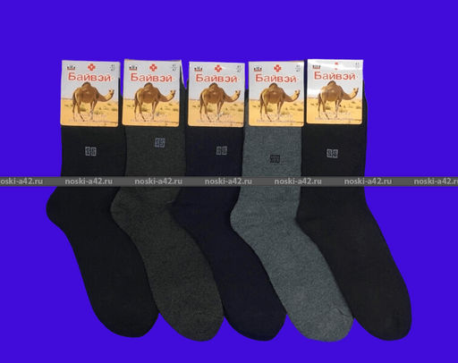 Цена за 12 пар. БАЙВЕЙ антибактериальные термоноски мужские внутри махра ВЕРБЛЮЖЬЯ ШЕРСТЬ 41-47 (фактически 41-45)