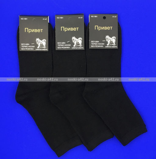 Цена за 3 пар. 3 ПАРЫ - Термоноски мужские СОБАЧЬЯ ШЕРСТЬ арт. 1881 ЧЕРНЫЕ 41-47 (фактически 40-44)