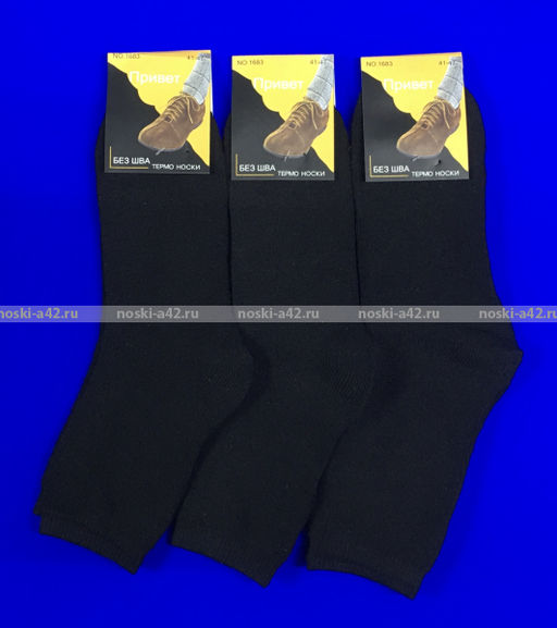 Цена за 3 пар. 3 ПАРЫ - Термоноски мужские ШЕРСТЬ внутри махра арт. 1683 ОДНОТОННЫЕ ЧЕРНЫЕ 41-47 (фактически 41-44)