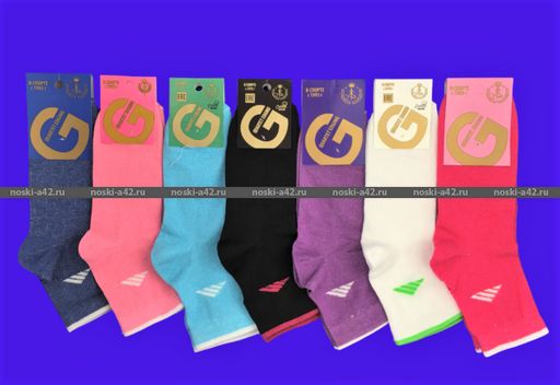 Цена за 10 пар. Золотая Игла носки женские спортивные с лайкрой с-1111 23-25