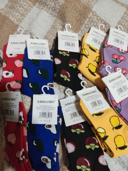 Цена за 10 пар. AMIGOBS ЦВЕТНЫЕ НОСКИ женские, подростковые "Фрукты" арт. 9302 (9345) фактически 36-39