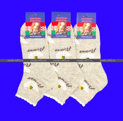 Цена за 10 пар. Беларусь носки женские лен гладкие Ромашки 23