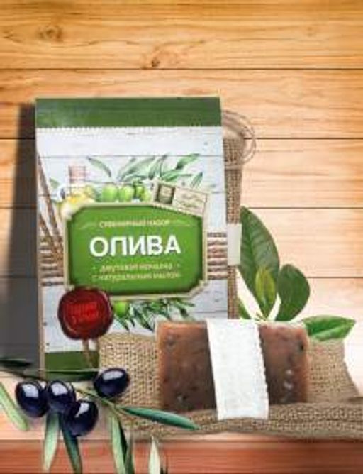 Сувенирный набор "ОЛИВА" Джутовая мочалка с натуральным мылом (брусок) 82 г