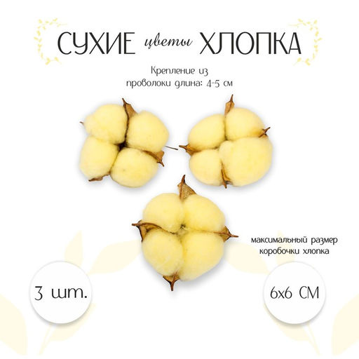 Сухие цветы хлопка, набор 3 шт., размер 1 шт. 6 6 см, цвет жёлтый