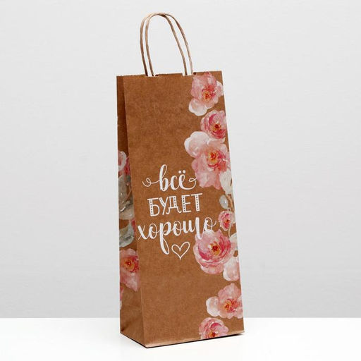 Цена за 10 шт. Пакет крафт "Всё будет хорошо", 14 х 8 х 33 см