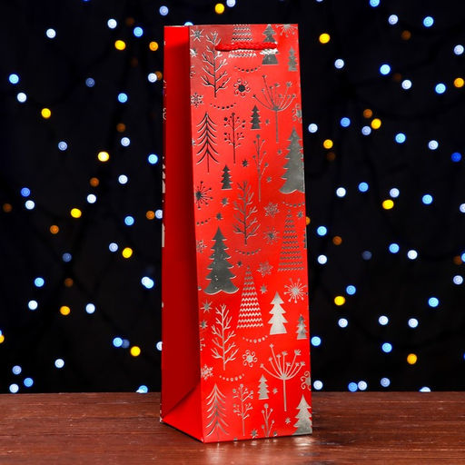 Пакет ламинированный под бутылку "Елочки" Люкс 11 х 38 х 11 см