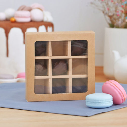 Цена за 5 шт. Упаковка для конфет, крафт, на 9 шт, 13,5 х 13,5 х 3,2 см