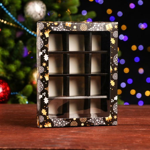 Цена за 5 шт. Упаковка для конфет 12 шт Новогодние олени 19 х 15 х 3,6 см