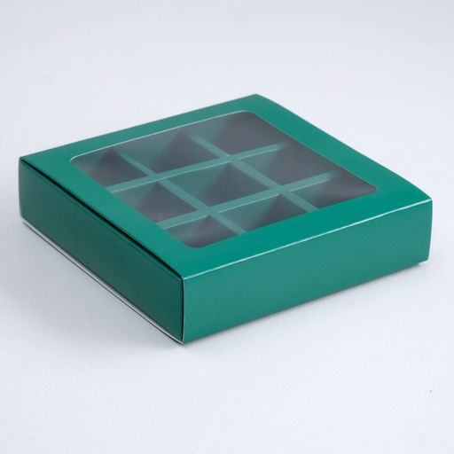 Цена за 5 шт. Коробка под 9 конфет с обечайкой, изумрудная, 14,5 х 14,5 х 3,5 см