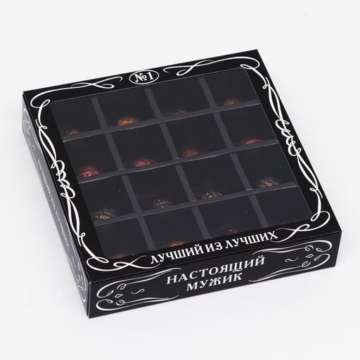 Цена за 5 шт. Коробка для конфет, 16 шт, "Мужская", черная, 17,7 х 17,7 х 3,8 см