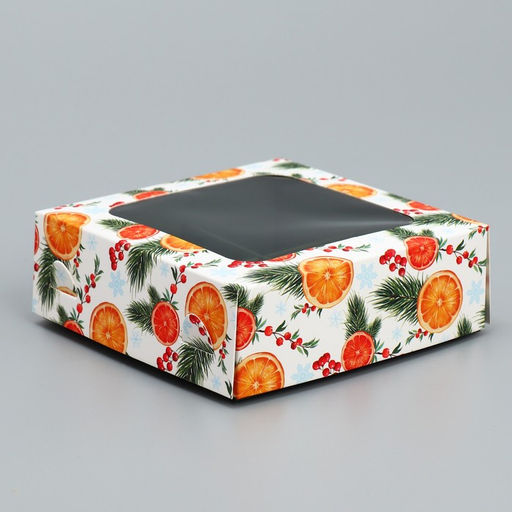 Цена за 5 шт. Коробка для конфет Апельсины, 10.5 х 10.5 х 3.5 см