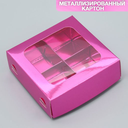 Цена за 5 шт. Коробка под 4 конфеты Розовая, 10.5 х 10.5 х 3.5 см