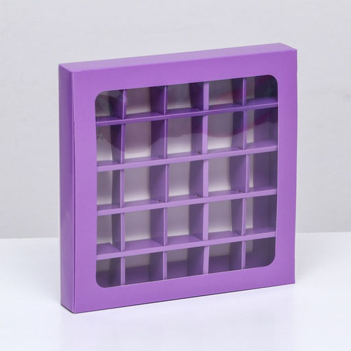 Коробка для конфет 25 шт с окном, 22 х 22 х 3,5 см, сиреневый